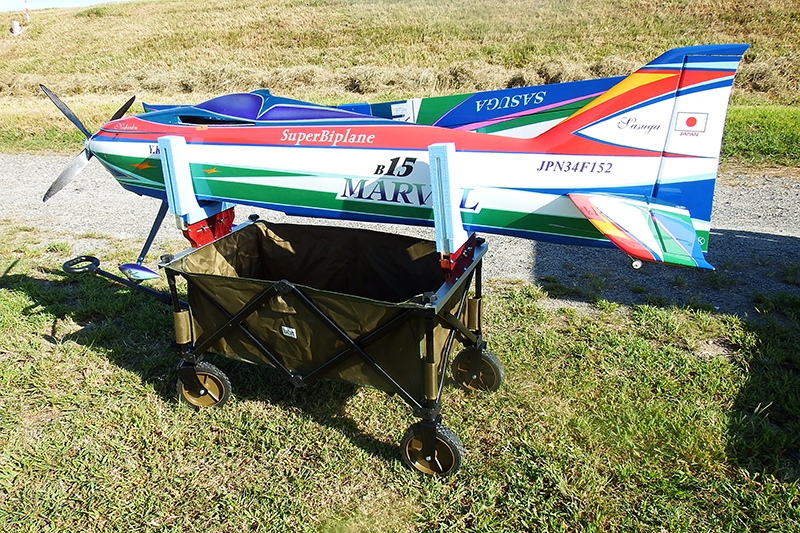 3,ピットスタンド前後の長さが950mmあります。そのためにF3A電動機体のバッテリーを外してもバランスが崩れて不安定になる心配が解消しました。
